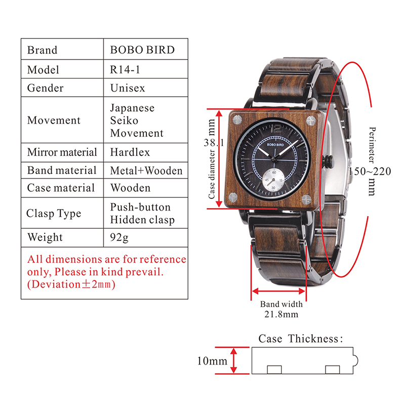 Le cadran en bois, associé à un bracelet combinant bois et acier inoxydable, offre une esthétique raffinée et durable. Le mouvement quartz garantit une précision inégalée, tandis que la boucle déployante avec barre de sécurité assure un ajustement parfait à votre poignet. Disponible en trois couleurs captivantes : marron, bois clair et rouge, cette montre est conçue pour les amateurs d’horlogerie qui recherchent à la fois originalité et qualité.